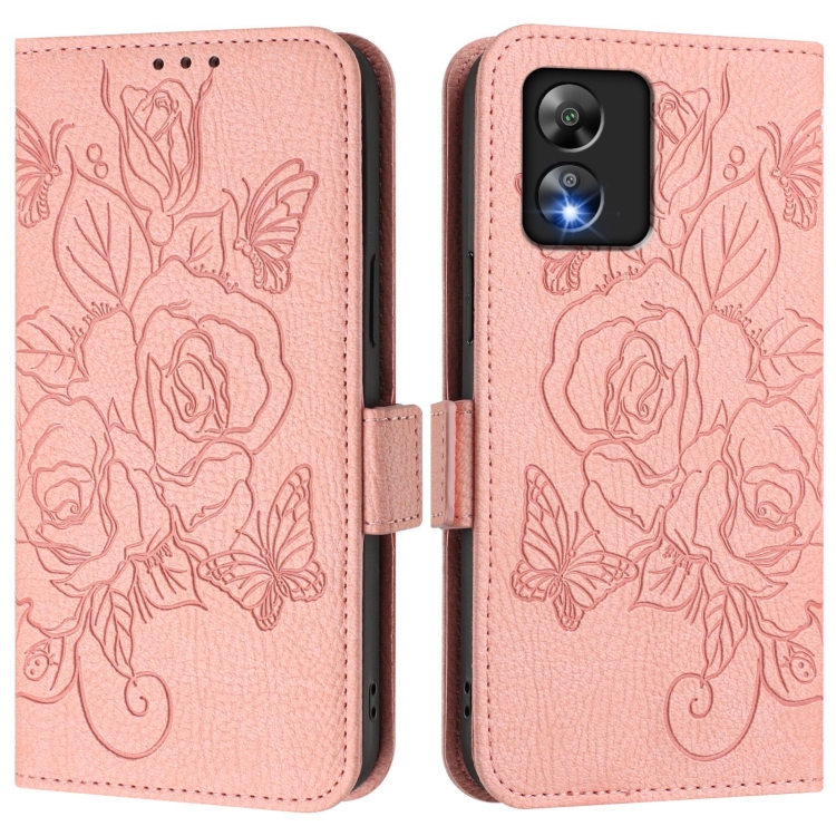 Funda de Cuero Antirrobo RFID con Relieve para Boost Mobile Celero 5G SC (Rosa)