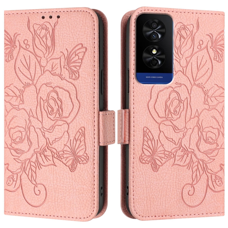 Funda de Cuero Antirrobo RFID con Relieve para TCL 50 5G (Rosa)
