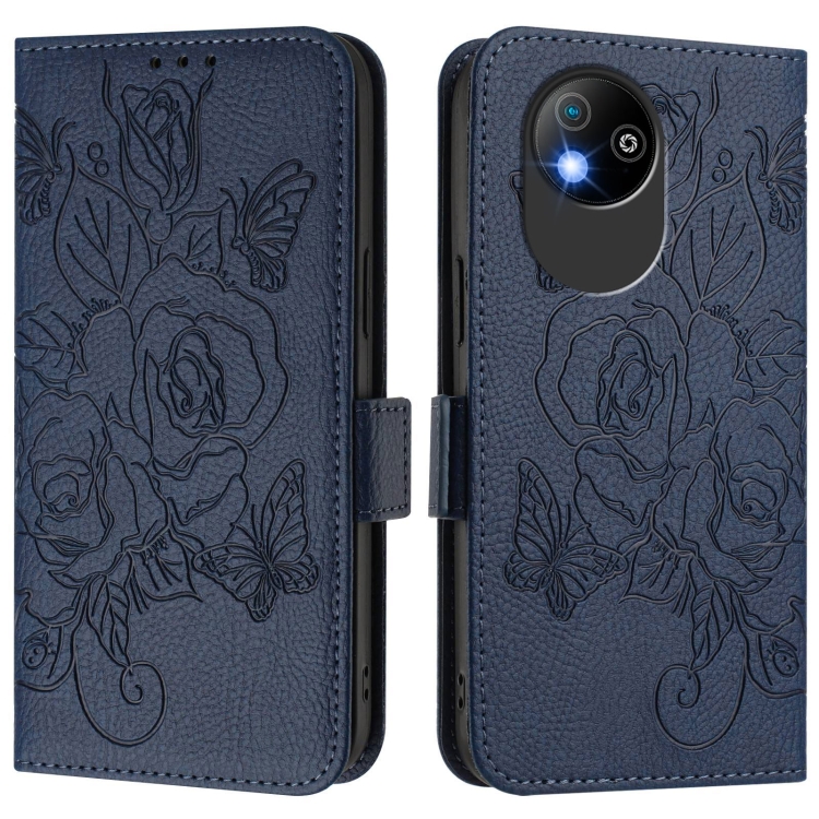 Funda de Cuero Antirrobo Rfid con Relieve Rosa para ZTE Blade A35 Lite (Azul Oscuro)