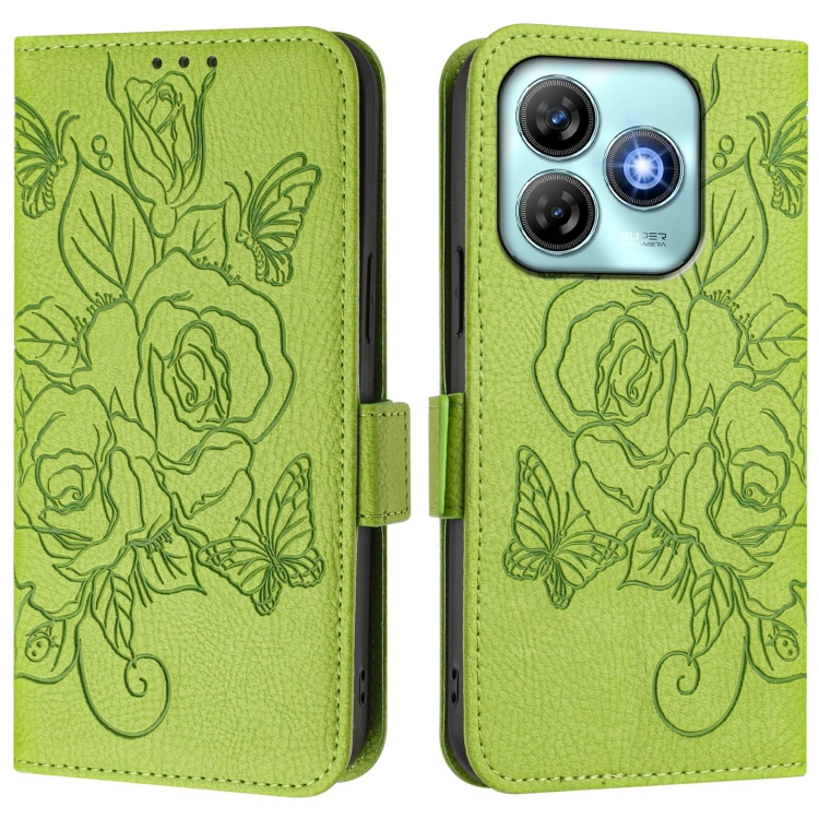 Funda Cuero Antirrobo Rfid Relieve Rosa para ZTE Blade A75 4G (Verde)
