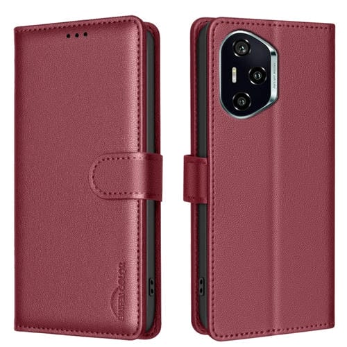 Funda de Cuero Antirrobo RFID con Textura de Lichi para Honor 300 Pro/300 Ultra (Rojo)