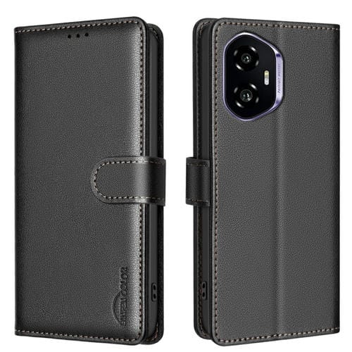 Funda de Cuero Antirrobo RFID con Textura de Lichi para Honor 300 (Negro)