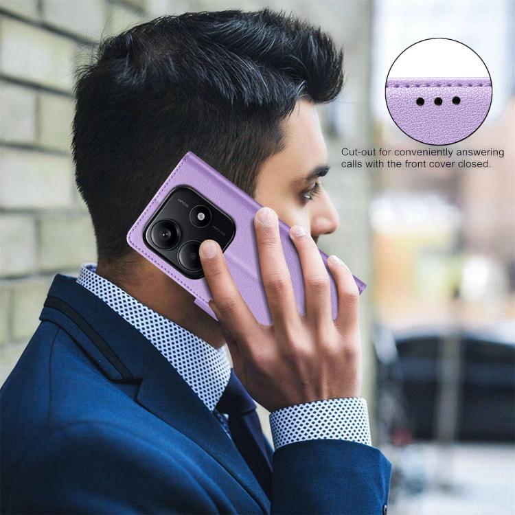 Funda de Cuero Antirrobo Rfid con Textura Litchi para Redmi Note 14 4G (Morado)