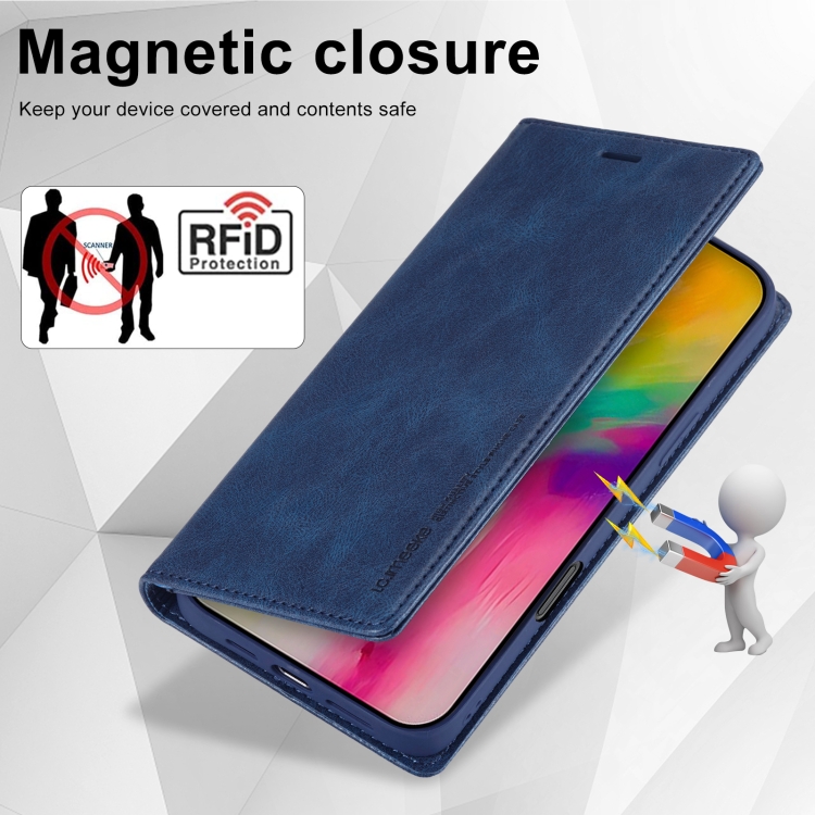 Funda de Cuero Antirrobo Rfid Lc.Imeeke para iPhone 16 Pro (Azul)