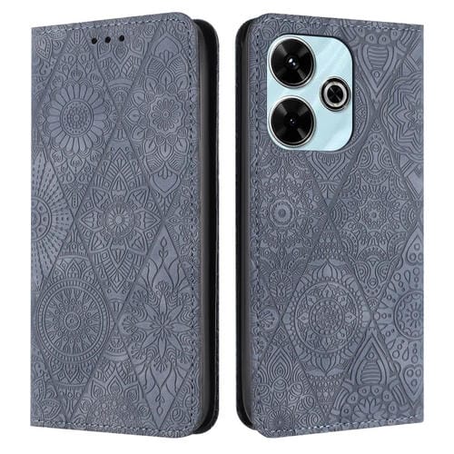 Funda de Cuero con Adsorción En Relieve Étnico para Xiaomi Redmi 13 4G (Gris)