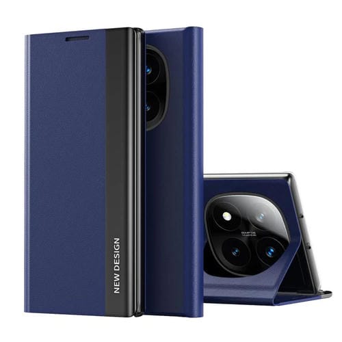 Funda de Cuero con Adsorción Lateral Galvanizada para Xiaomi Redmi Note 14 Pro+ 5G (Azul Oscuro)