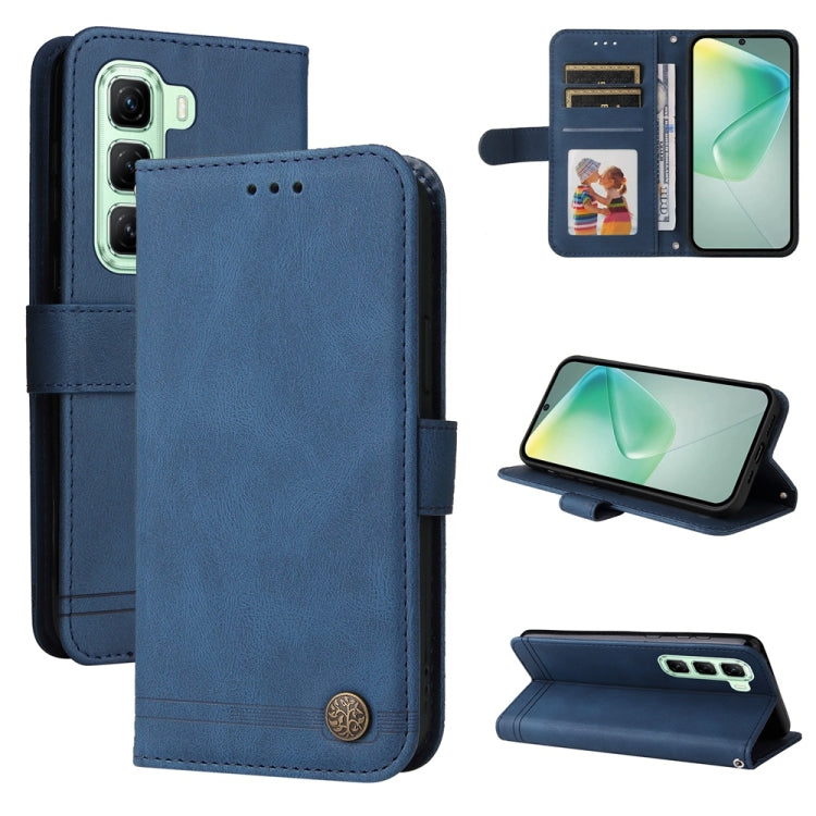 Funda de Cuero con Botones de Metal y Diseño Árbol de la Vida para Infinix Hot 50 5G (Azul)