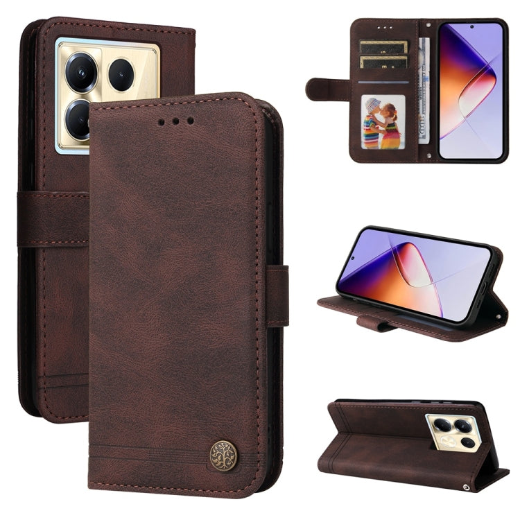 Funda de Cuero con Botones de Metal y Diseño Árbol de la Vida para Infinix Note 40 5G (Marrón)