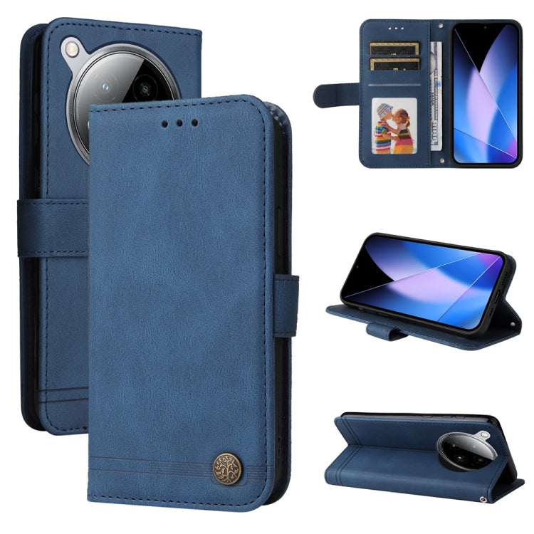 Funda de Cuero para Infinix Zero 40 4G/5G con Botones de Metal y Diseño Árbol de la Vida (Azul)