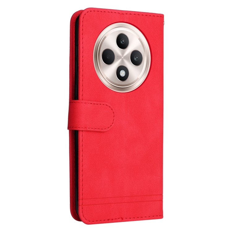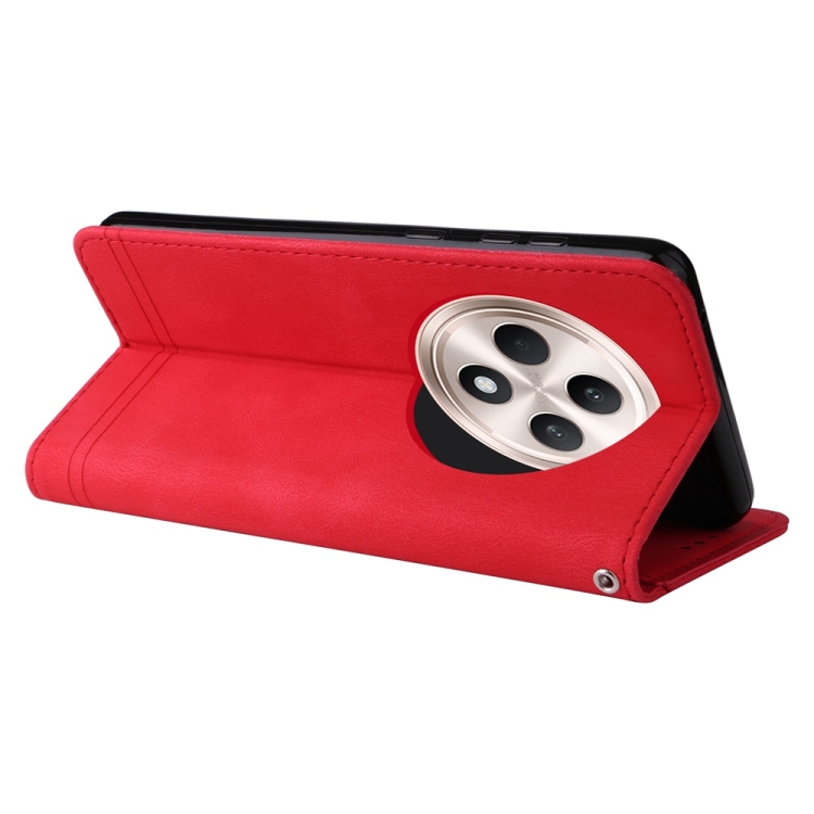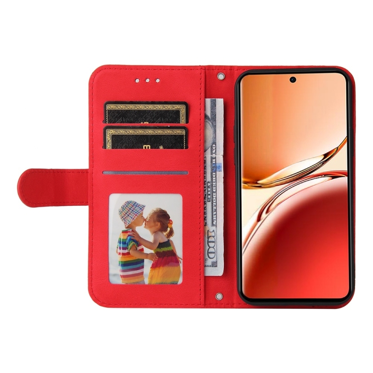 Funda de Cuero con Botones de Metal y Diseño de Árbol de la Vida para Oppo Reno12 F 5G Global Skin Feel (Rojo)