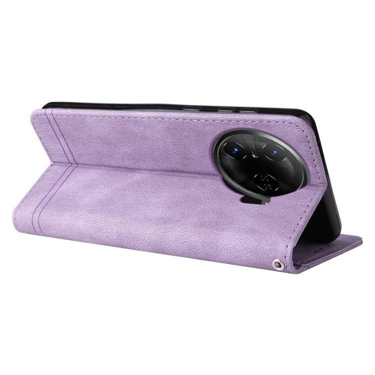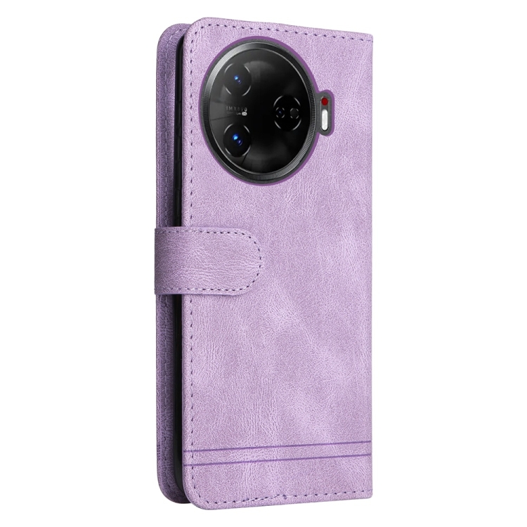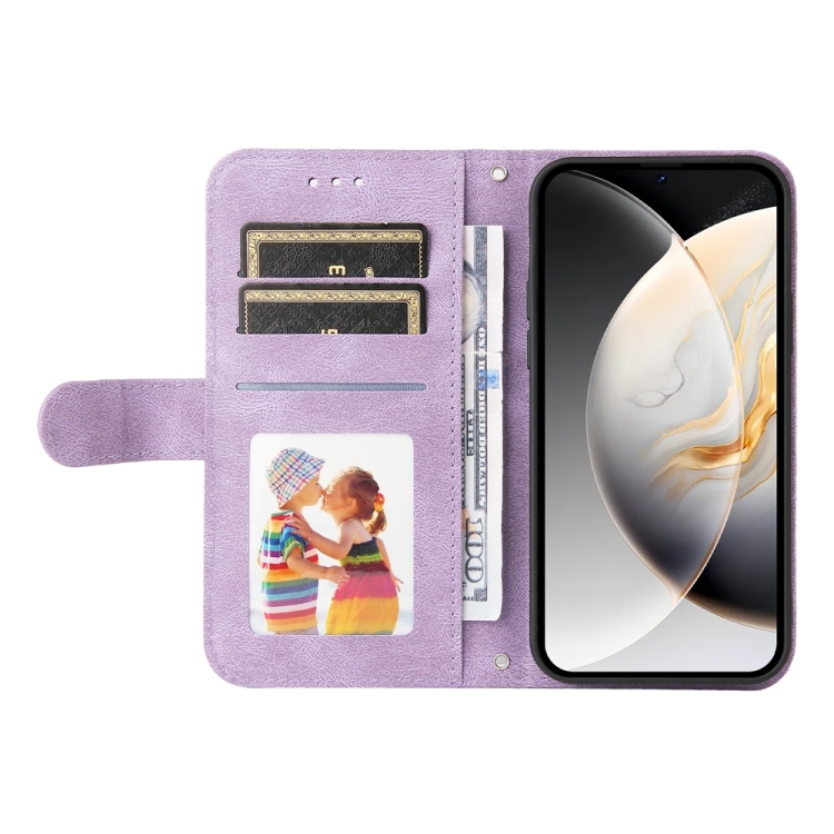 Funda de Cuero para Tecno Camon 30 Pro con Botones de Metal y Diseño Árbol de la Vida (Morado)