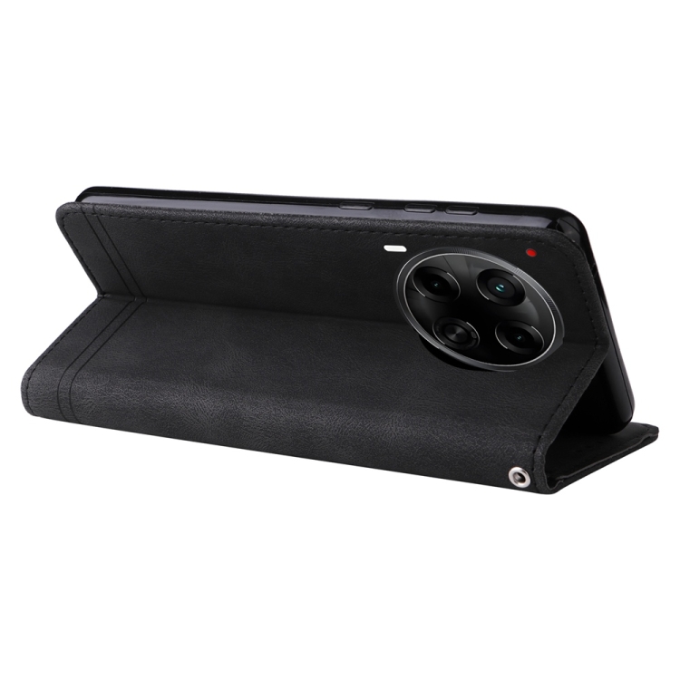 Funda de Cuero para Tecno Camon 30S y Camon 30S Pro con Botones de Metal y Diseño Árbol de la Vida (Negro)