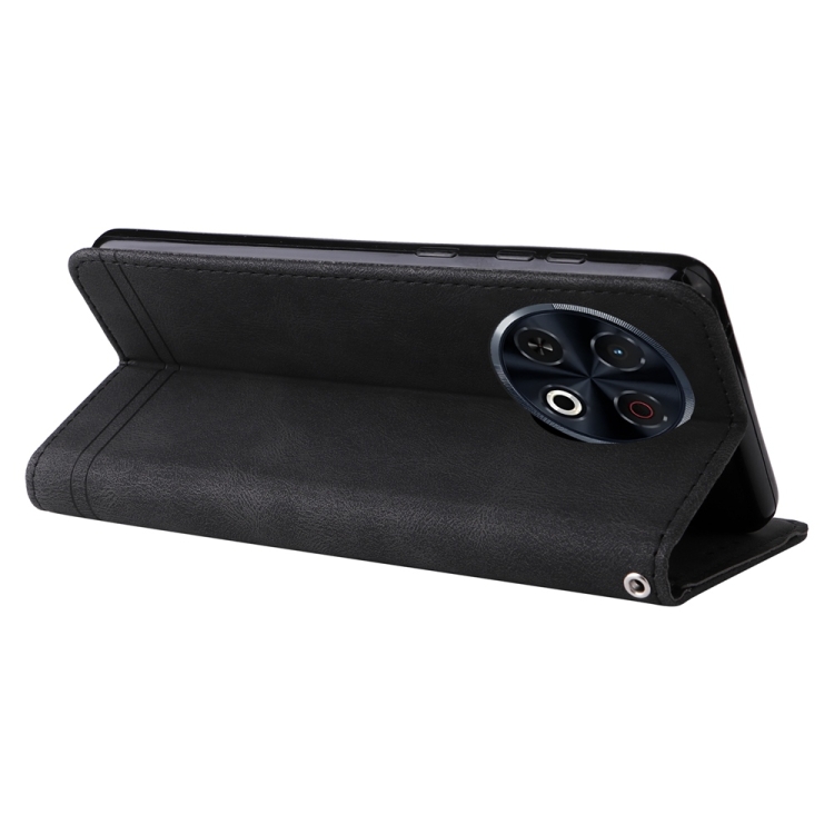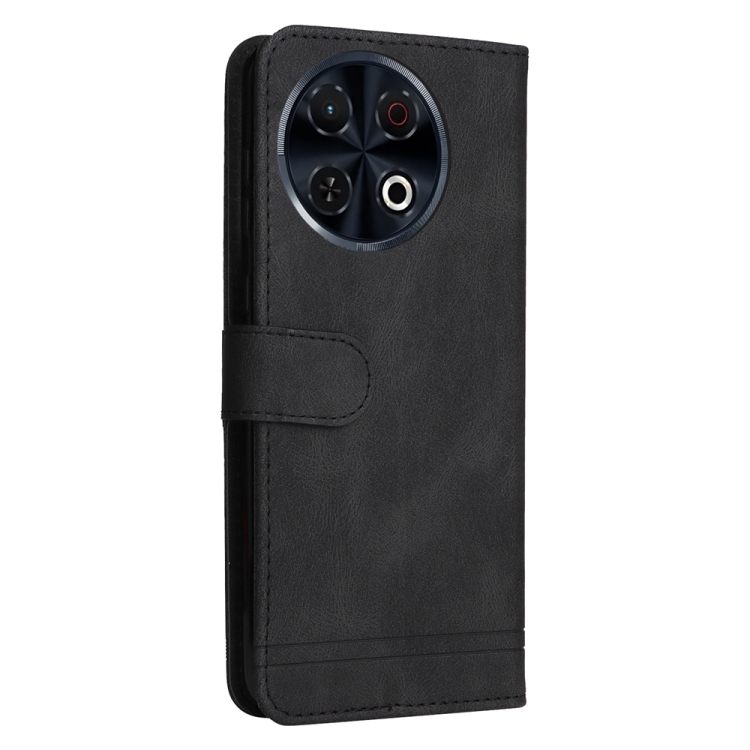 Funda de Cuero para Tecno Spark 30 Pro 4G con Botones de Metal y Diseño Árbol de la Vida (Negro)