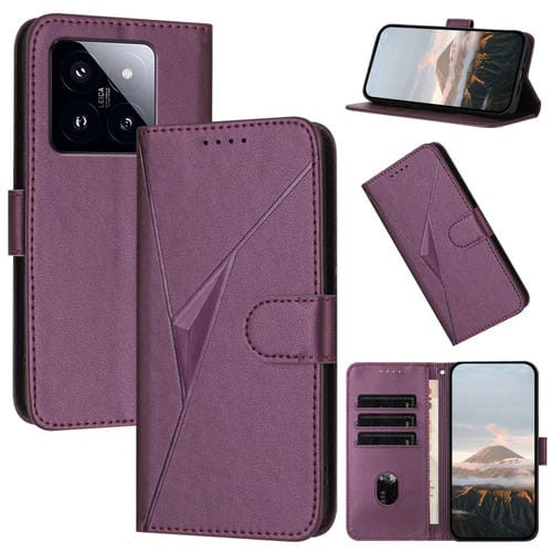 Funda De Cuero Con Hebilla Y Diseño Triangular Para Xiaomi 14 Pro (Morado Oscuro)