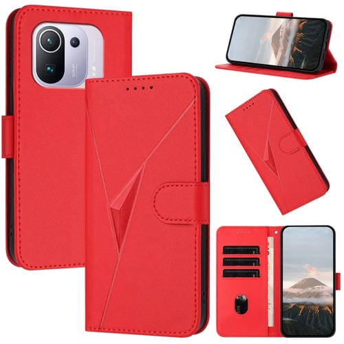 Funda de Cuero con Hebilla y Diseño Triangular para Xiaomi Mi 11 Pro (Roja)