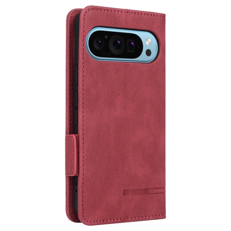 Funda de Cuero con Cierre Magnético para Google Pixel 9 Pro Xl (Rojo)