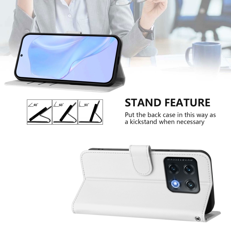 Funda de Cuero con Cordón para OnePlus 10 Pro 5G (Blanco)