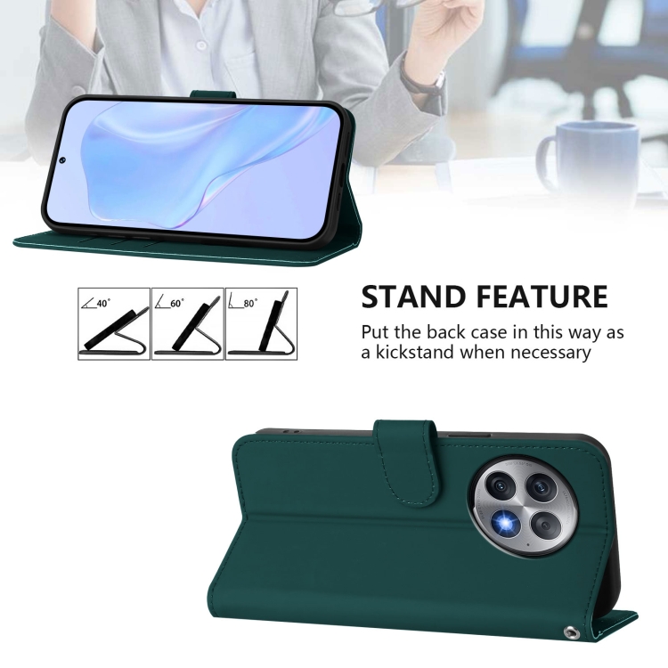Funda de Cuero con Cordón para OnePlus Ace 2 Pro 5G con Tacto de Piel (Verde Oscuro)