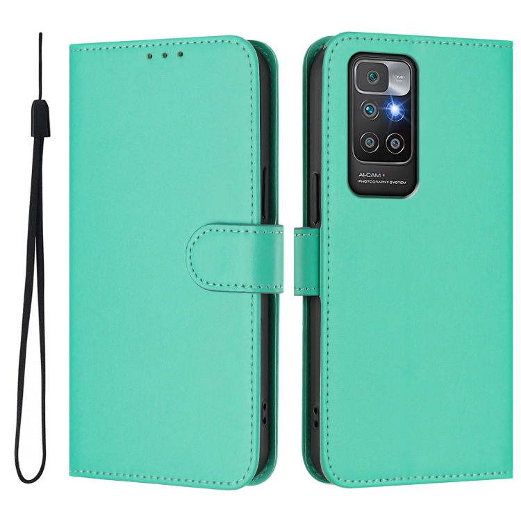 Funda de Cuero con Cordón para Redmi 10 4G 2021 con Diseño Global de Piel Sintética de Color Sólido (Verde)