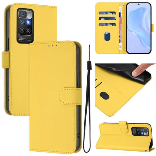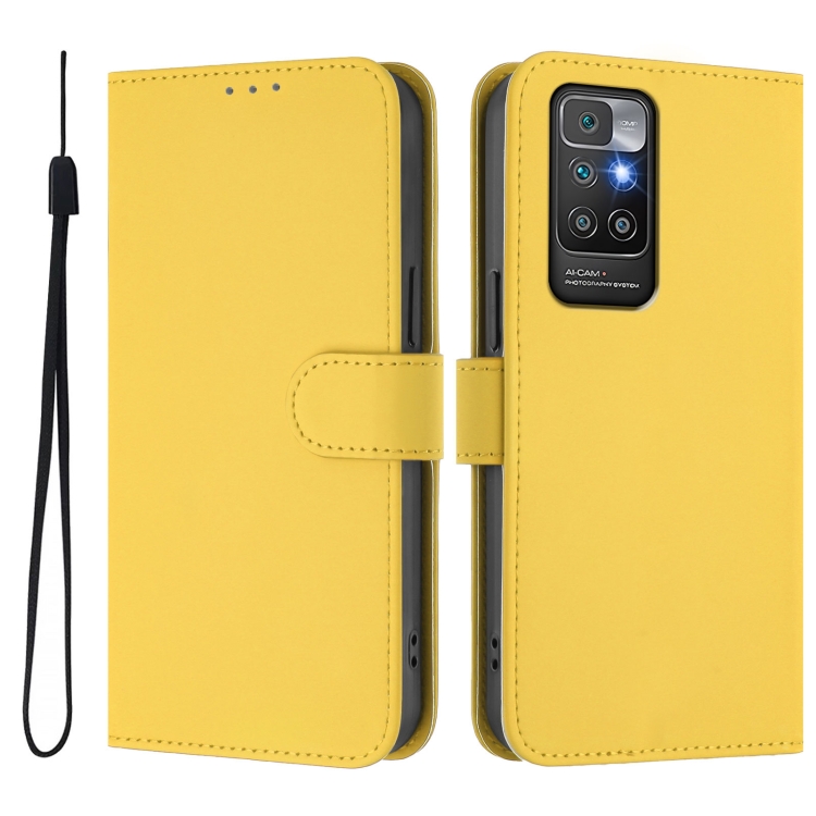 Funda de Cuero con Cordón para Redmi 10 4G 2021 con Tacto de Piel Global y Color Sólido (Amarillo Limón)