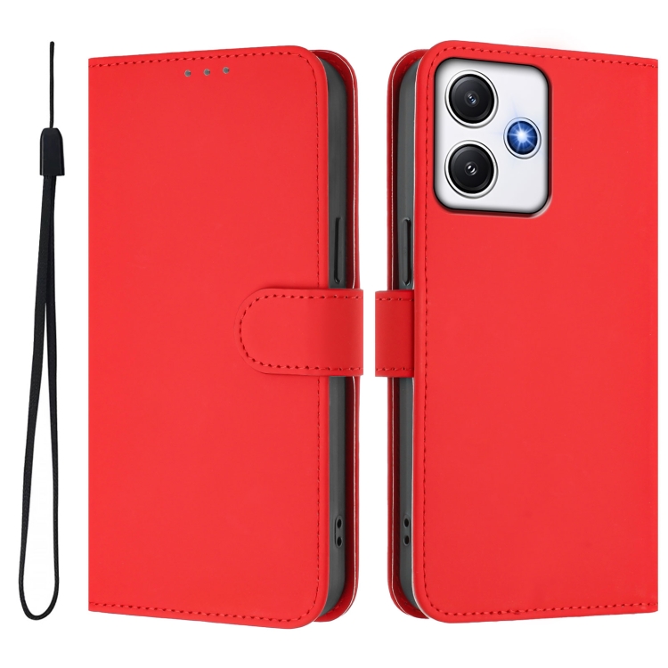 Funda de Cuero con Cordón para Redmi 12 4G Global/Note 12R con Tacto de Piel de Color Sólido (Rojo)