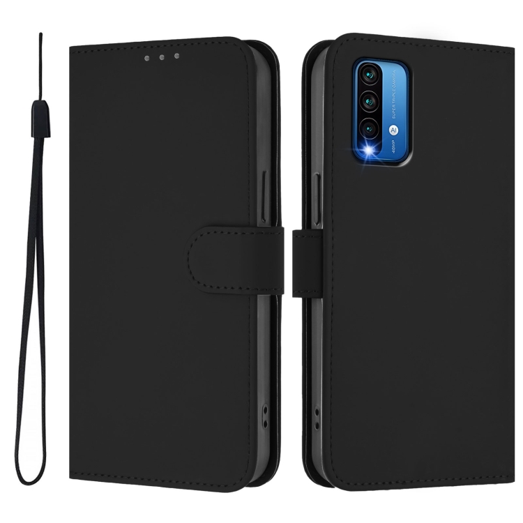 Funda de Cuero con Cordón para Redmi 9 Power/9T Global Skin Feel de Color Sólido (Negro)
