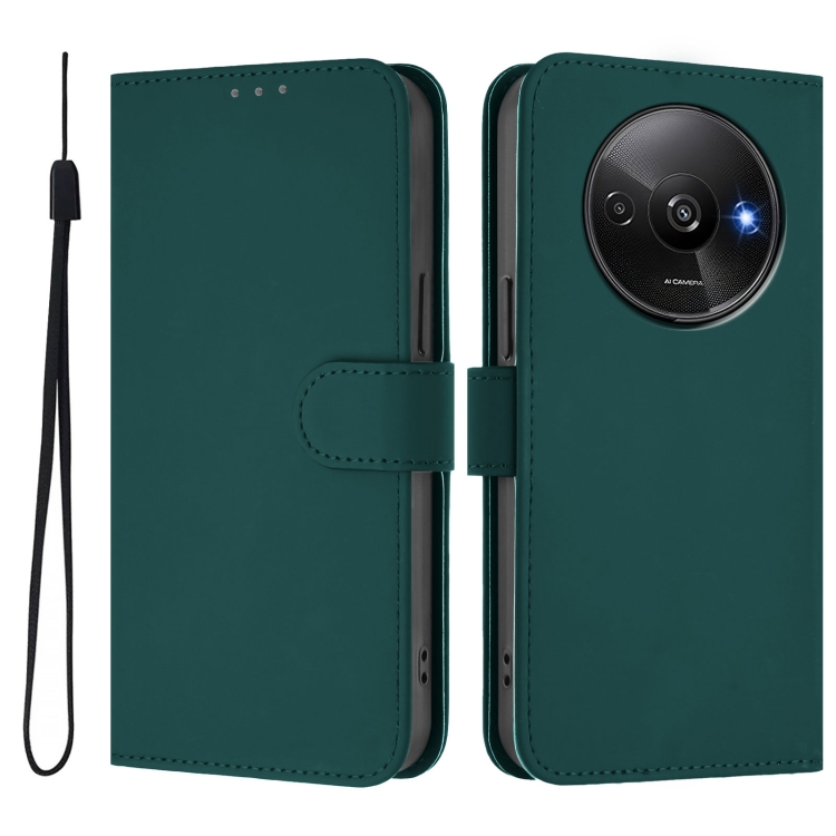Funda de Cuero con Cordón para Redmi A3 4G Global / A3X 4G, Color Sólido y Tacto Suave (Verde Oscuro)