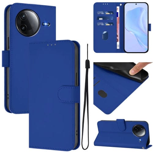 Funda de Cuero con Cordón para Redmi K80/K80 Pro, Color Sólido y Tacto Suave (Azul Oscuro)