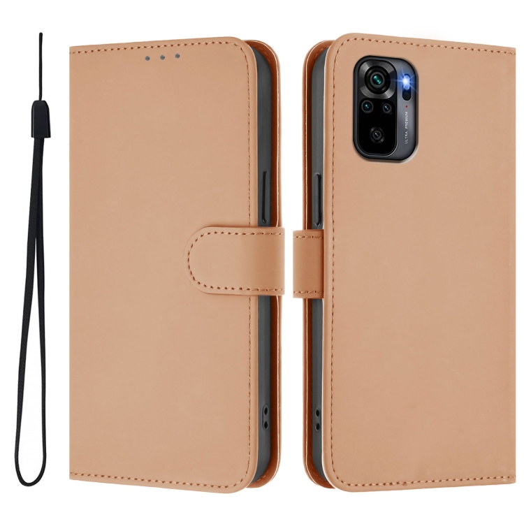 Funda de Cuero con Cordón para Redmi Note 10 4G/Note 10S 4G con Tacto de Piel de Color Liso (Desnudo)
