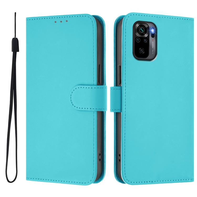 Funda de Cuero con Cordón para Redmi Note 10 4G/Note 10S 4G con Tacto de Piel de Color Sólido (Azul Lago)