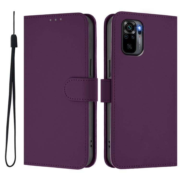 Funda de Cuero con Cordón para Redmi Note 10 4G/Note 10S 4G con Tacto de Piel de Color Sólido (Violeta)