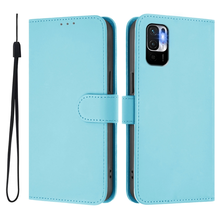 Funda de Cuero con Cordón para Redmi Note 10 5G/Note 10T 5G con Tacto de Piel de Color Sólido (Azul Cielo)