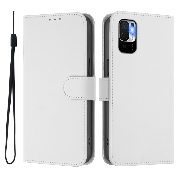 Funda de Cuero con Cordón para Redmi Note 10 5G/Note 10T 5G con Tacto de Piel de Color Sólido (Blanco)
