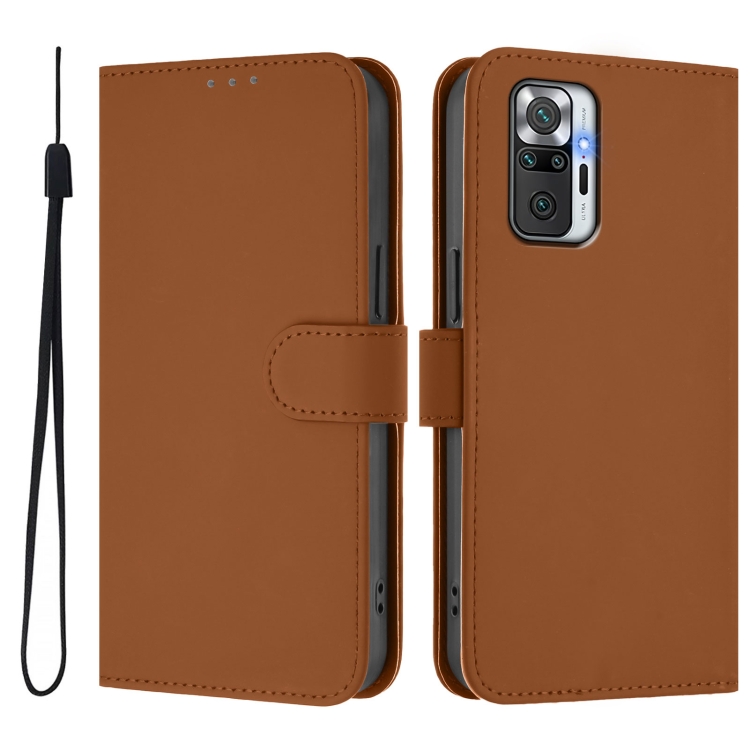 Funda de Cuero con Cordón para Redmi Note 10 Pro 4G/10 Pro Max con Textura de Piel de Color Sólido (Marrón)
