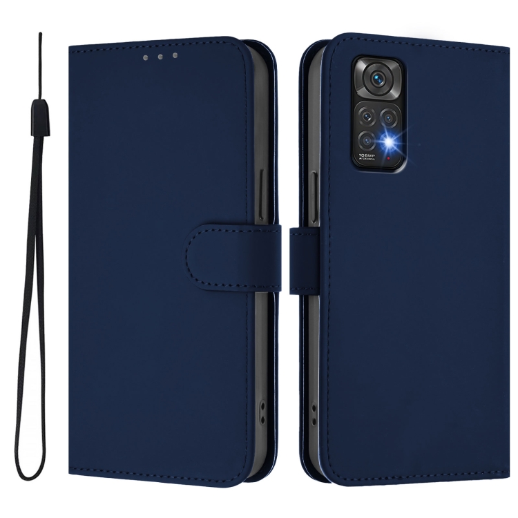 Funda de Cuero con Cordón para Redmi Note 11 4G, Color Sólido, Tacto Global (Azul Marino)