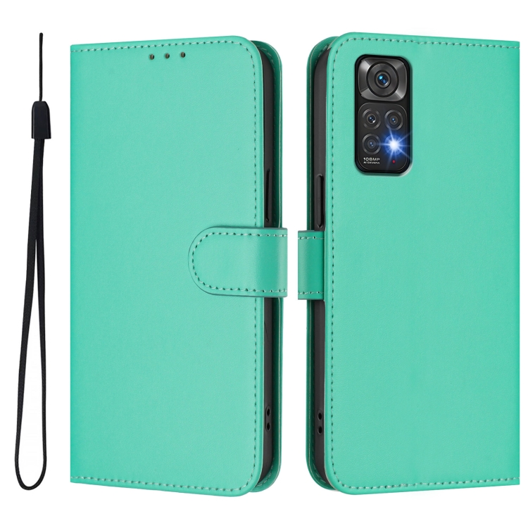 Funda de Cuero con Cordón para Redmi Note 11 4G, Color Sólido, Tacto Global (Verde)