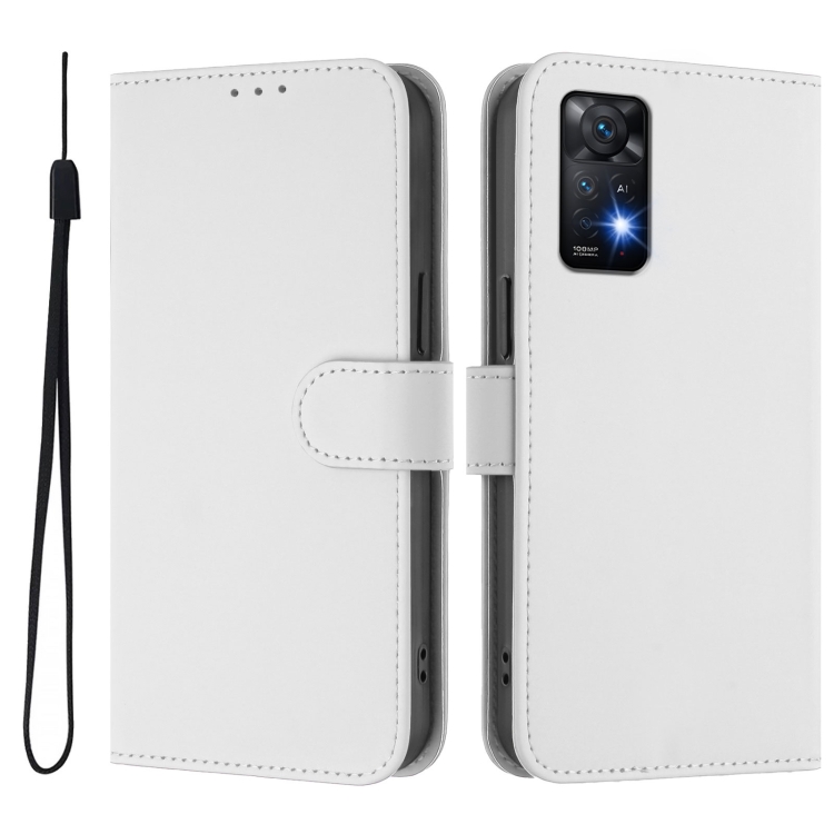 Funda de Cuero con Cordón para Redmi Note 11 Pro 4G, Color Sólido y Tacto Global (Blanco)