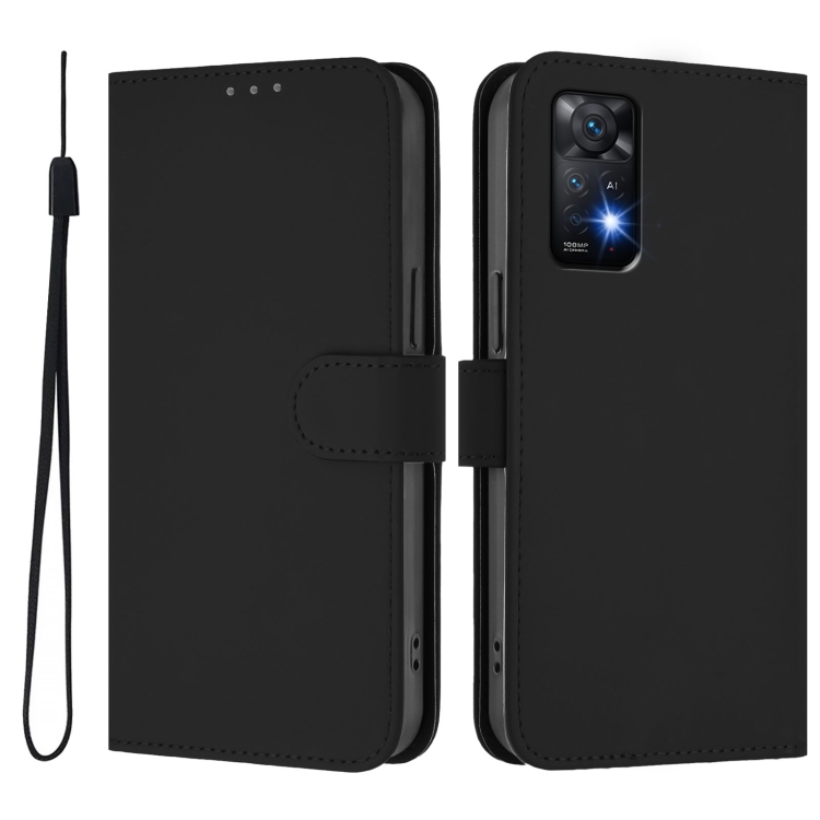 Funda de Cuero con Cordón para Redmi Note 11 Pro 4G, Color Sólido y Tacto Global (Negro)