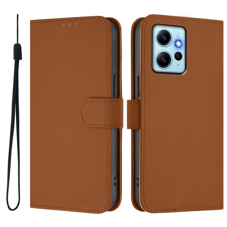 Funda de Cuero con Cordón para Redmi Note 12 4G, Color Sólido, Tacto Global (Marrón)
