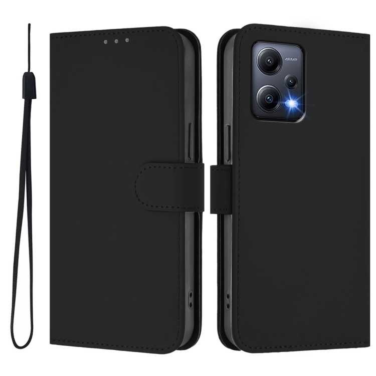 Funda de Cuero con Cordón para Redmi Note 12 5G con Sensación de Piel Global En Color Sólido (Negro)