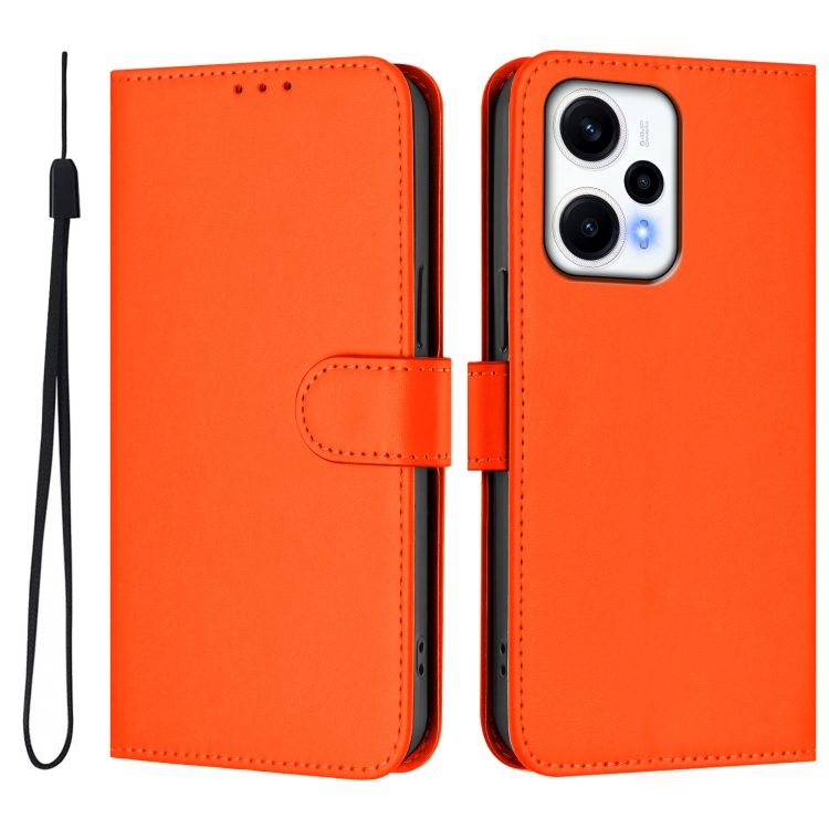 Funda de Cuero con Cordón para Redmi Note 12 Turbo 5G con Tacto de Piel de Color Sólido (Naranja)