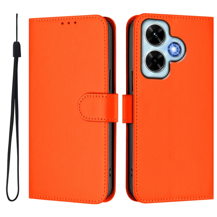 Funda de Cuero con Cordón para Redmi Note 13 4G, Color Sólido, Tacto Global (Naranja)