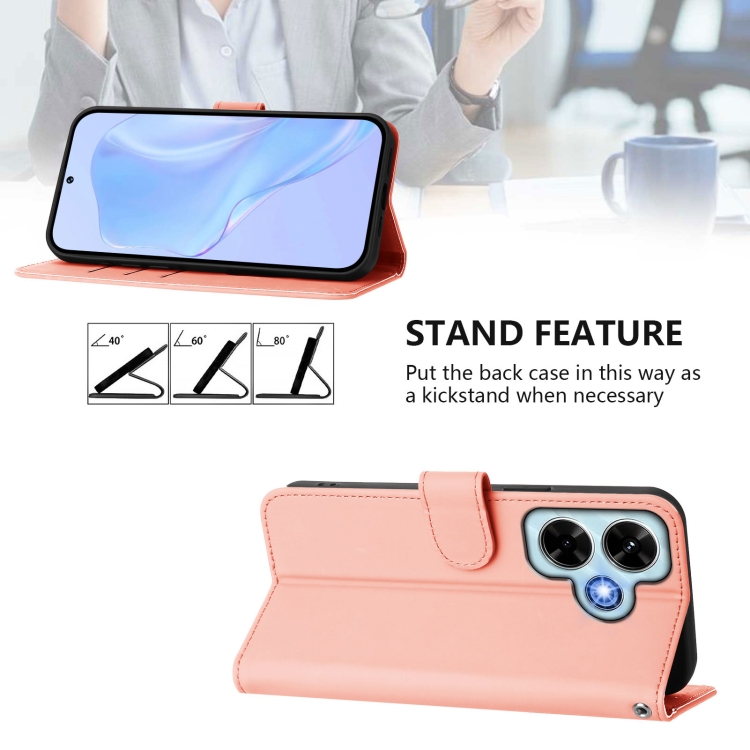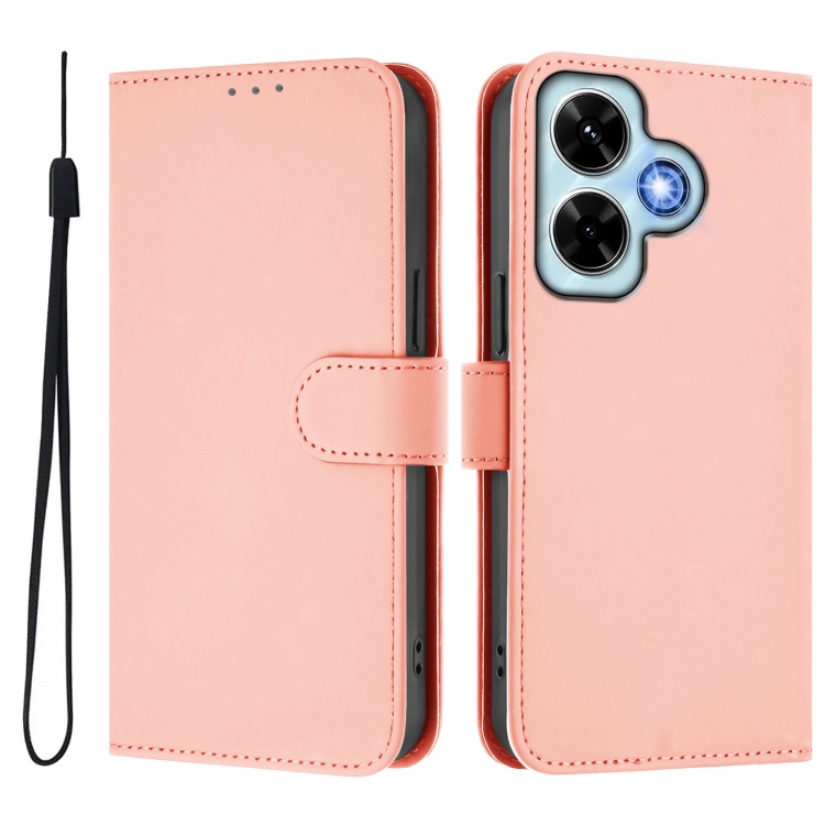 Funda de Cuero con Cordón para Redmi Note 13 4G, Color Sólido, Tacto Global (Rosa)