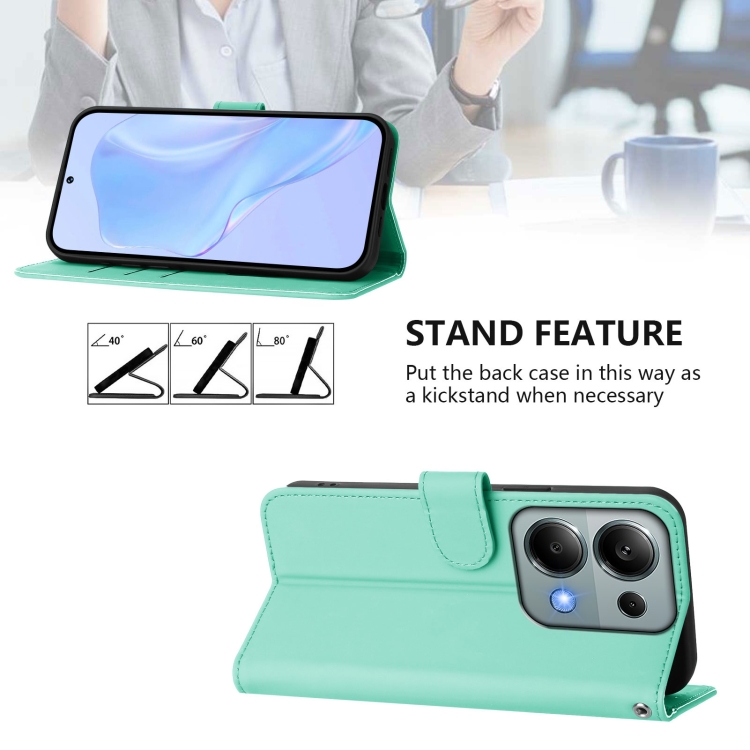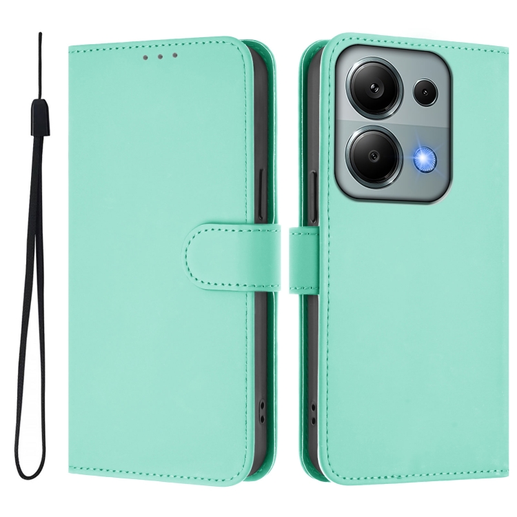 Funda de Cuero con Cordón para Redmi Note 13 Pro 4G, Color Sólido y Tacto Global (Verde Menta)
