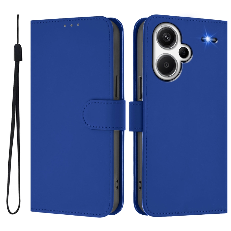 Funda de Cuero con Cordón para Redmi Note 13 Pro+ 5G, Color Sólido, Tacto Global (Azul Oscuro)