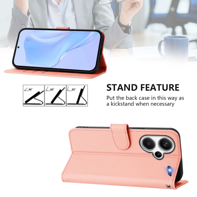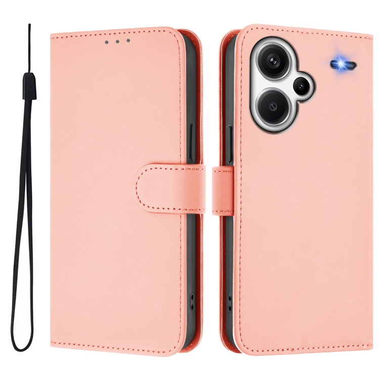 Funda de Cuero con Cordón para Redmi Note 13 Pro+ 5G, Color Sólido, Tacto Global (Rosa)