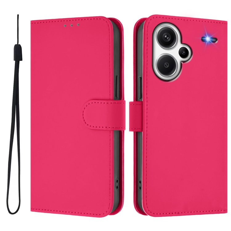 Funda de Cuero con Cordón para Redmi Note 13 Pro+ 5G, Color Sólido, Tacto Global (Rosa Rojo)