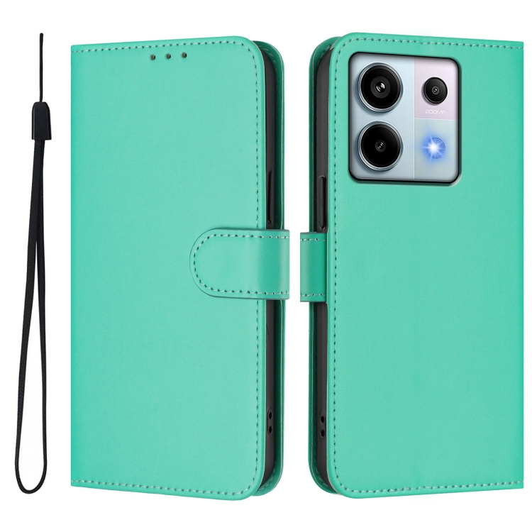 Funda de Cuero con Cordón para Redmi Note 13 Pro 5G, Color Sólido y Tacto Global (Verde)
