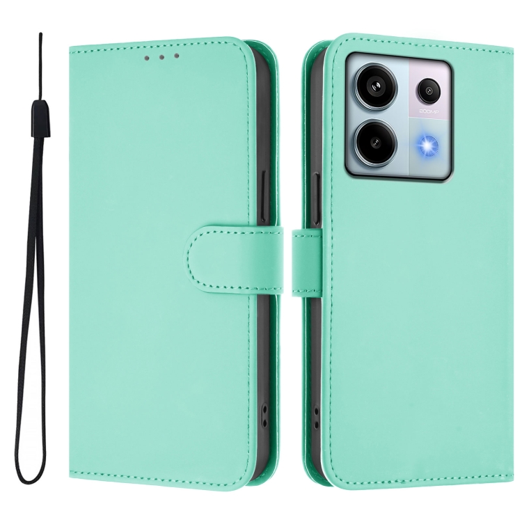 Funda de Cuero con Cordón para Redmi Note 13 Pro 5G, Color Sólido y Tacto Global (Verde Menta)