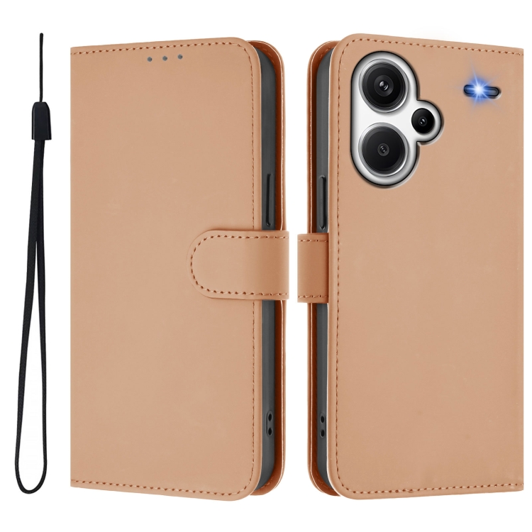 Funda de Cuero con Cordón para Redmi Note 13 Pro+ 5G con Sensación de Piel Global En Color Liso (Desnudo)